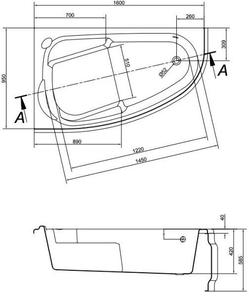 Ванна асимметричная Cersanit акриловая Joanna 160х95 левая арт. WA-JOANNA*160-L-W, (без монтажного комплекта/ножек)