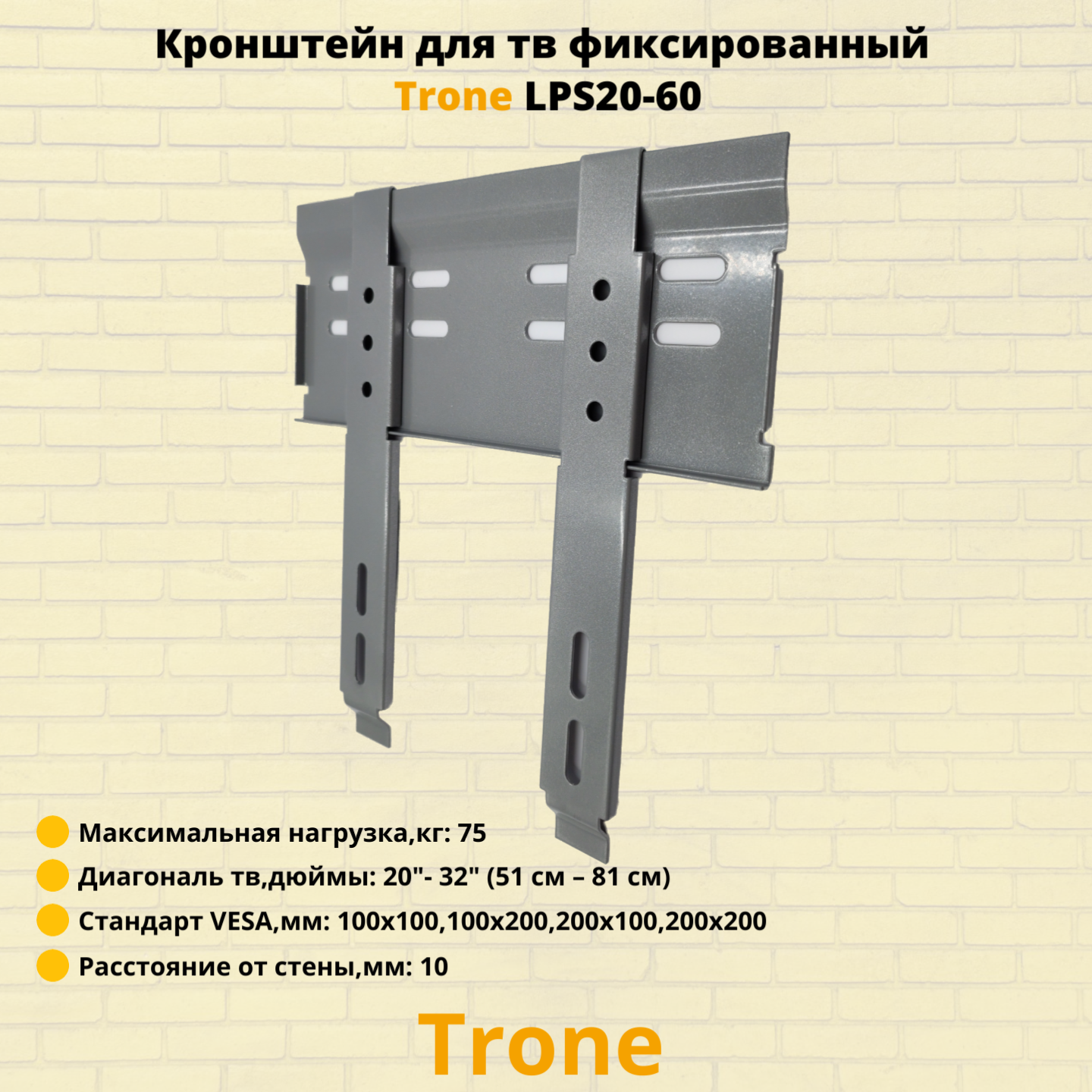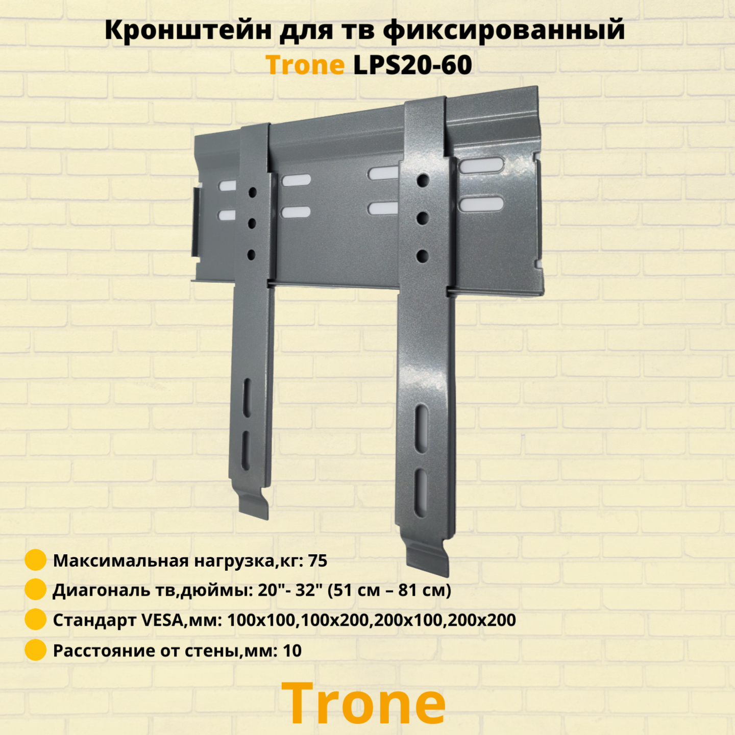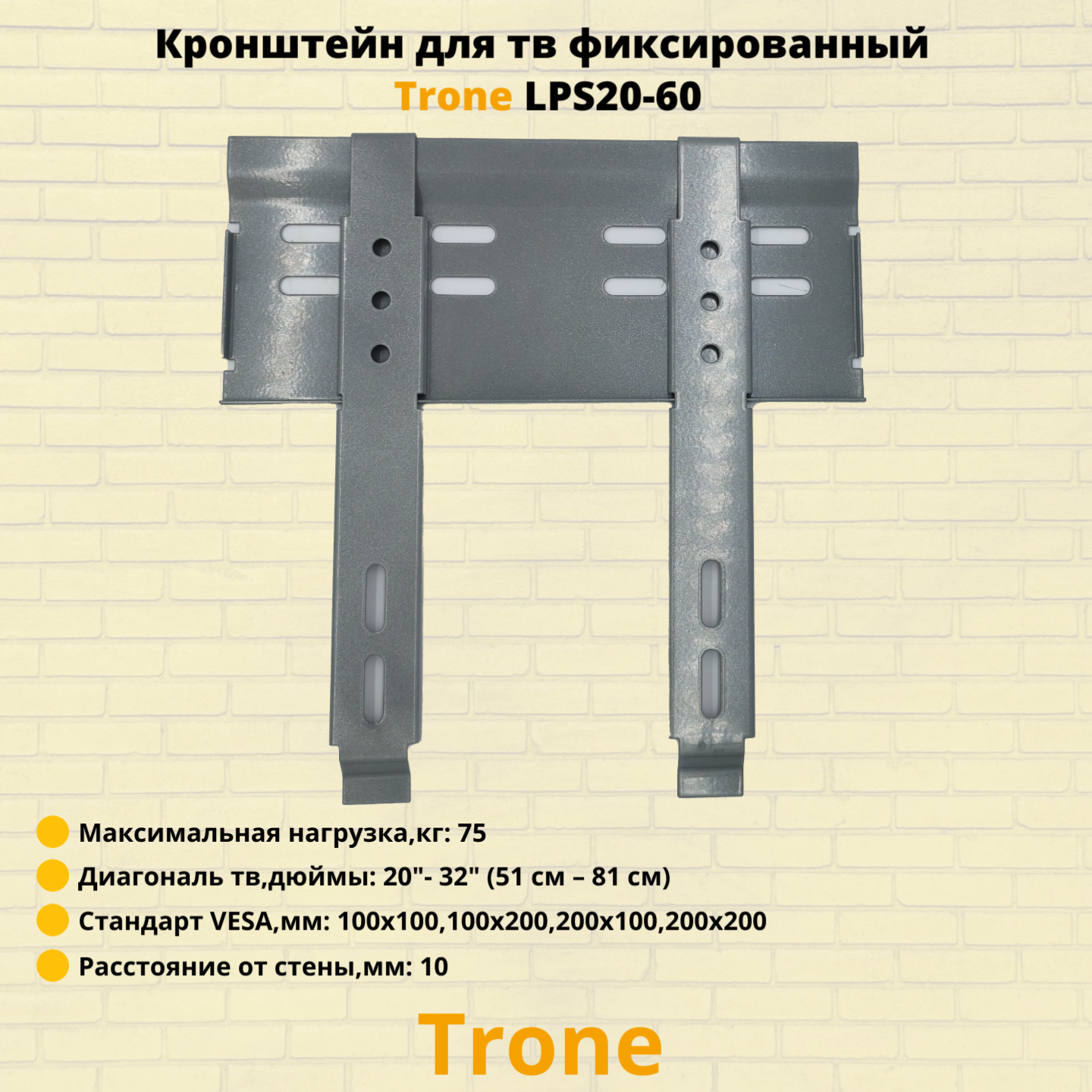 СохранитьКронштейн для телевизора на стену фиксированный с диагональю 20"-32" Trone LPS 20-60,серебро интересное: