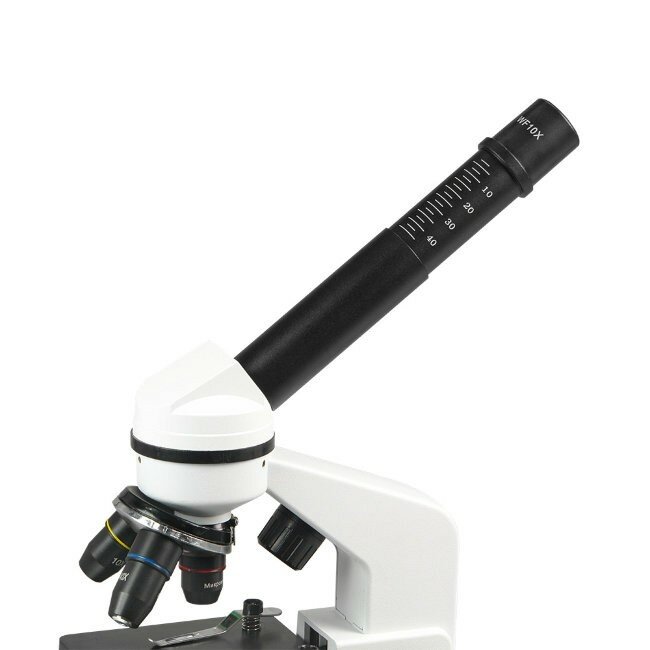 | Комплектация | штатив микроскопа с наклонным окулярным тубусом, встроенным осветителем отраженного света с регулировкой яркости (светодиод) и трехгнездным револьвером, основание со встроенным осветителем проходящего света с регулировкой яркости (светодиод), столик прямоугольный (90х90мм) (с клеммами и диском с диафрагмами со светофильтрами), объектив - 4х, объектив - 10х, объектив - 40х, окуляр 10х, линза Барлоу 2х, пластмассовая коробка с 5 предметными и 10 покровными стеклами и 5 подготовленными образцами, микротом, инкубатор для артемий, 4 флакона: дрожжи, смола "Резиновый наполнитель", морская соль, икра артемий, пинцет, пипетка, отвертка, кКейс для переноски, чехол, руководство по эксплуатации |