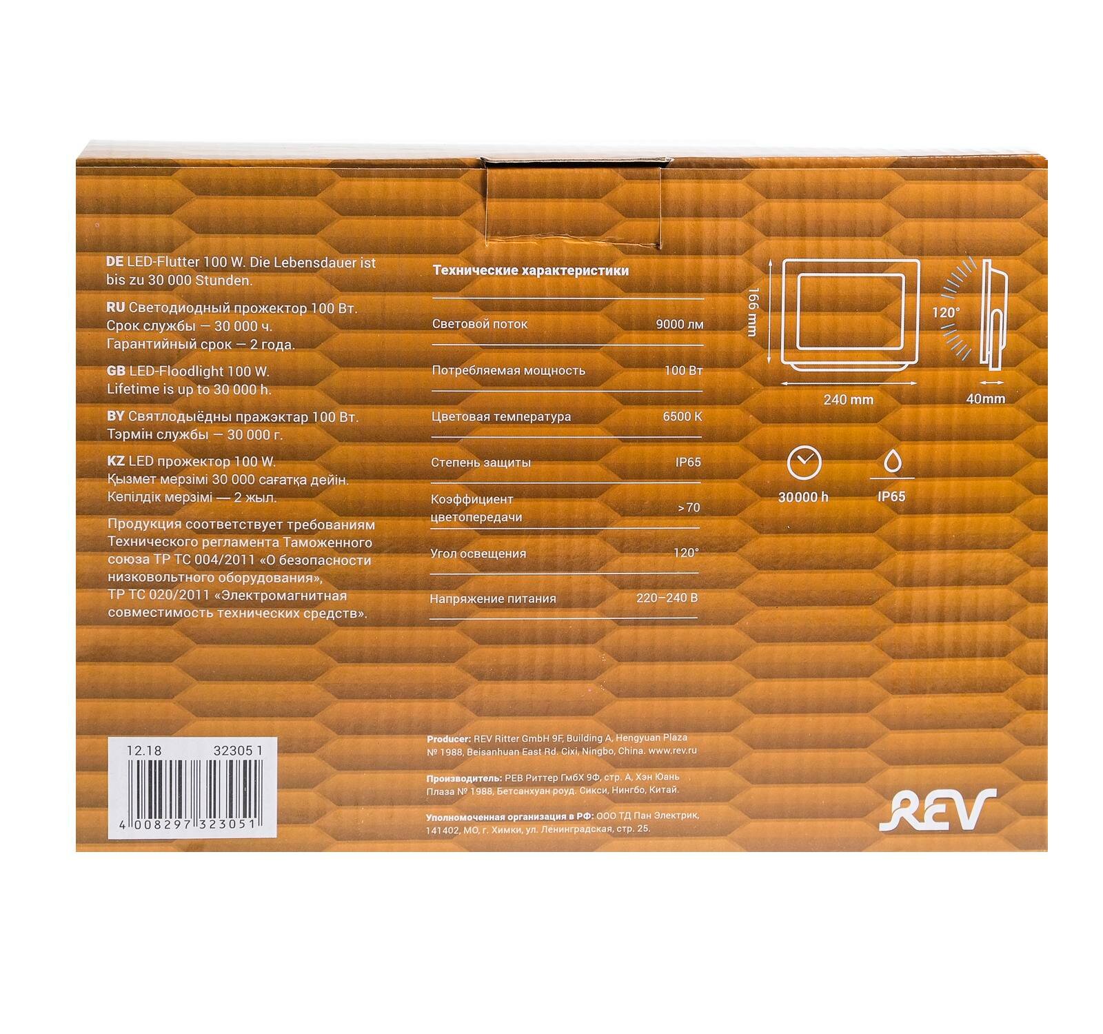 Купить REV Прожектор светодиодный REV Ultra Slim, 100 Вт, 6500 К, 8000 Лм, IP65