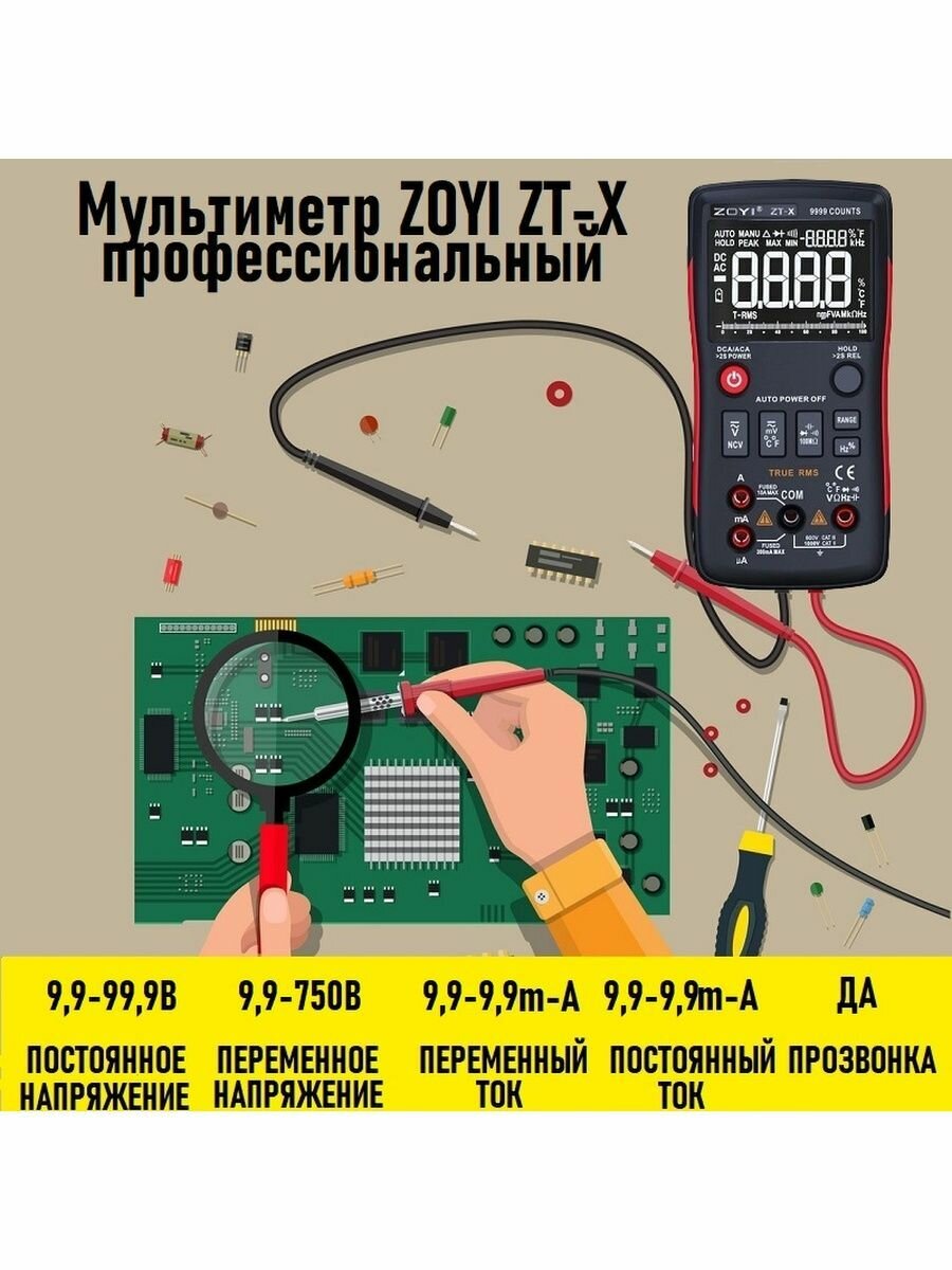 Автоматический мультиметр True RMS, 9999 отсчетов, ZT-X интересное: