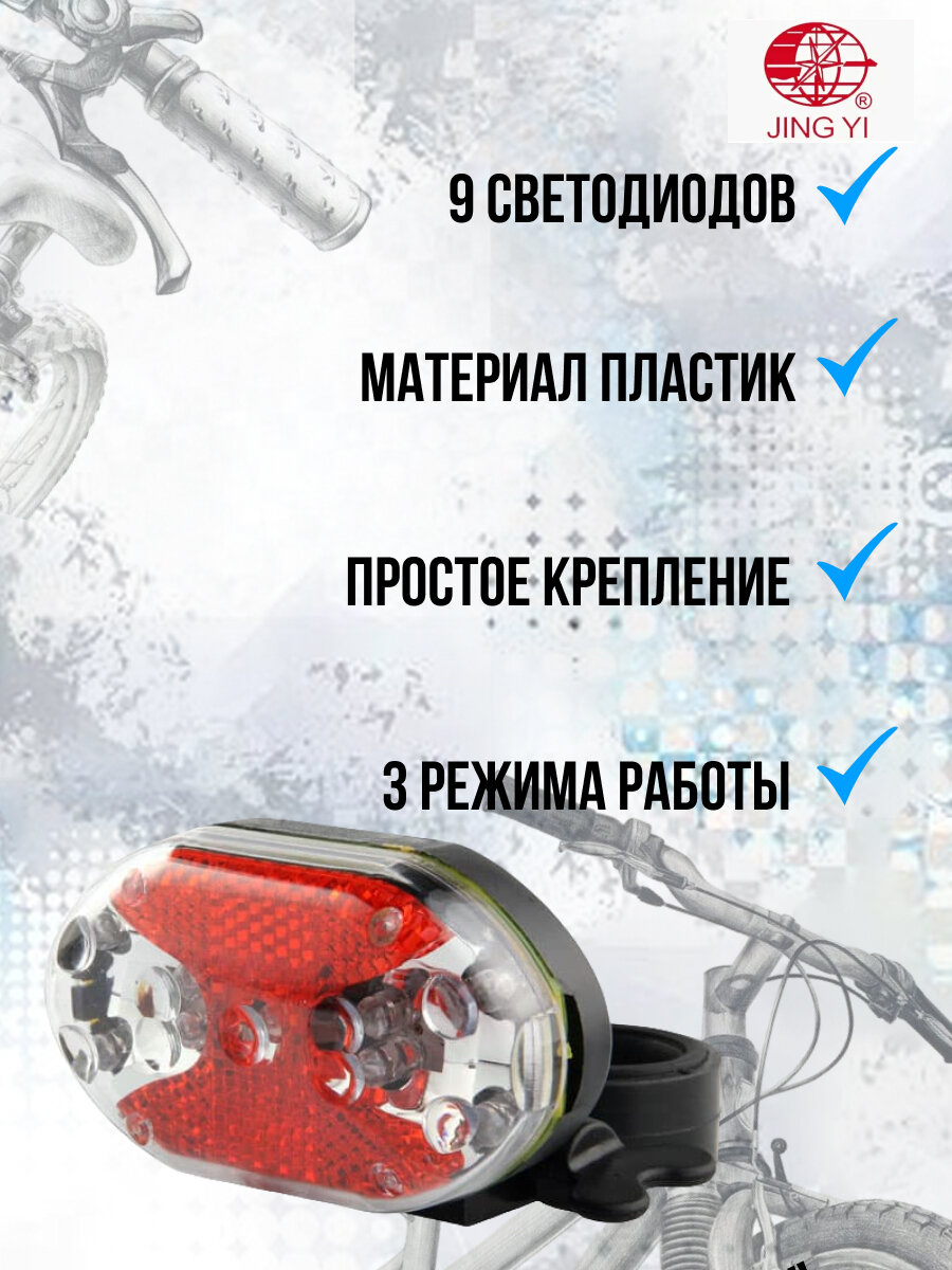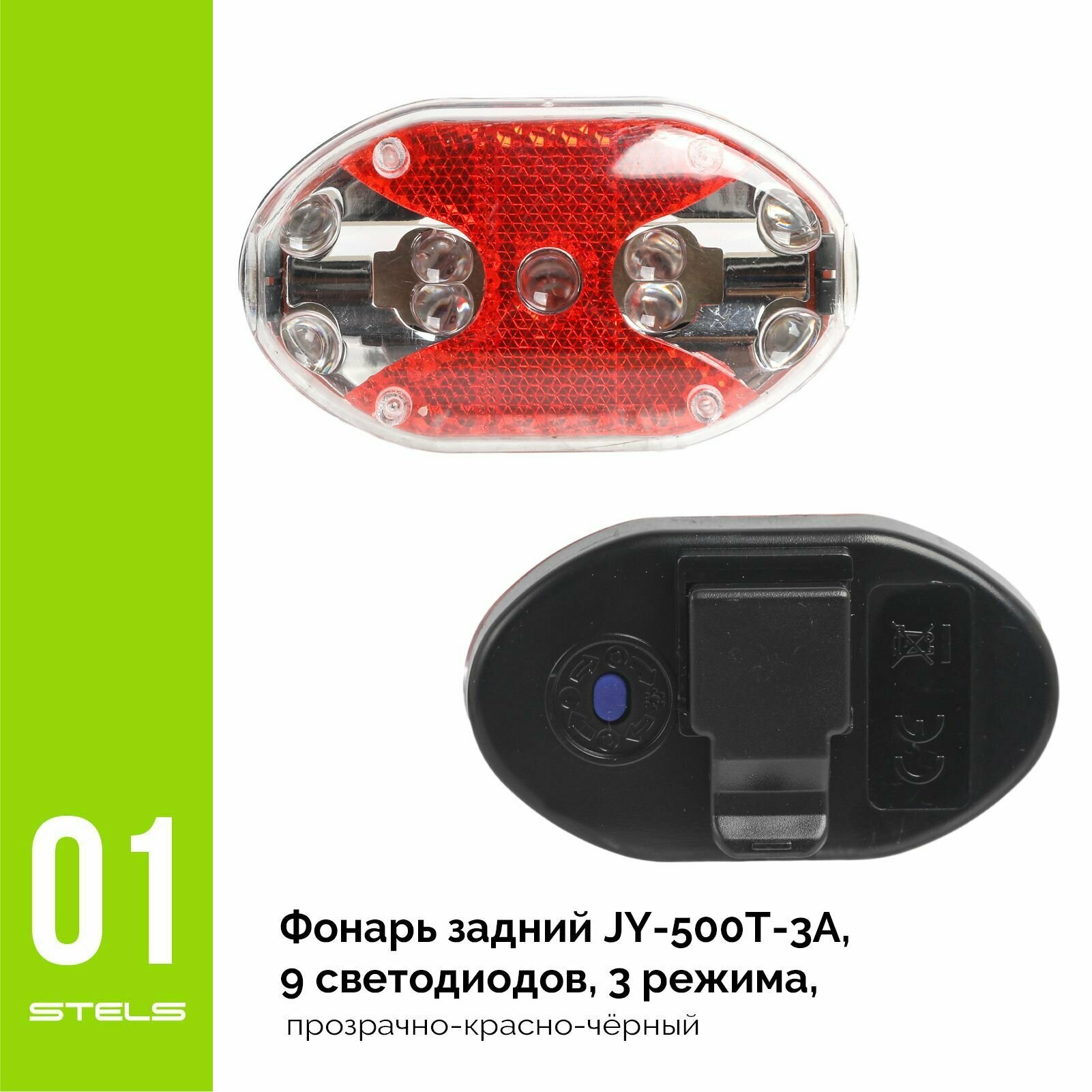 Фонарь велосипедный задний STELS JY-500T-3A, 9 светодиодов, 3 режима, прозрачно-красно-чёрный NEW