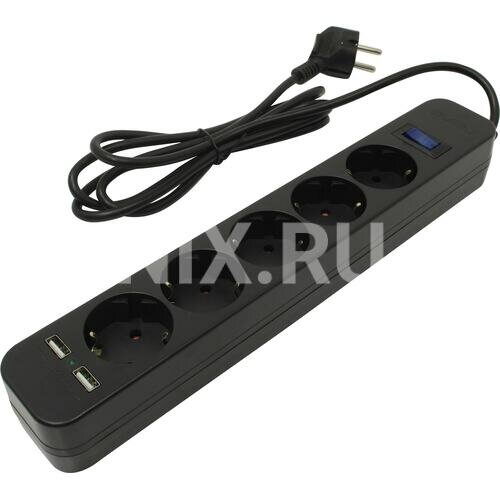 Сетевой фильтр SVEN SF-05LU 1,8 м (1,8м/5р,2xUSB(2.4А)) черный(SV-018832)