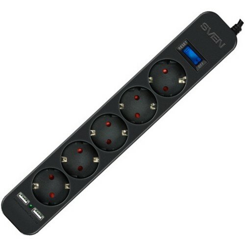 Удлинитель SVEN SF-05LU, 5 розеток, с/з, 10А / 2200 Вт черный 1.8 м 313 мм 52 мм 40 мм 5