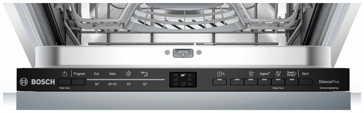 Serie 2, Встраиваемая посудомоечная машина 45см., SilencePlus; Класс A-А-A; уровень шума 46 дБ; 5 прогр.: Авто 45-60°, Эко 50°, 1-часовая 65°, Ночная программа, 5 спец.ф-ция: Intensive Zone Extra Rinse Extra Dry SpeedPerfect и удаленный старт; отсрочка ст