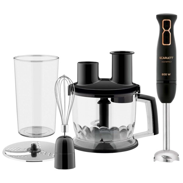 Блендер погружной с измельчителем, миксер Scarlett SC-HB42K09, 800 Вт, 2 скорости, режим turbo