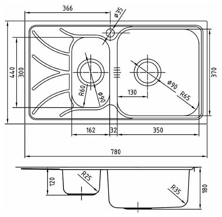 Мойка IDDIS Arro 78х44 R ARR78SZi77, нержавеющая сталь