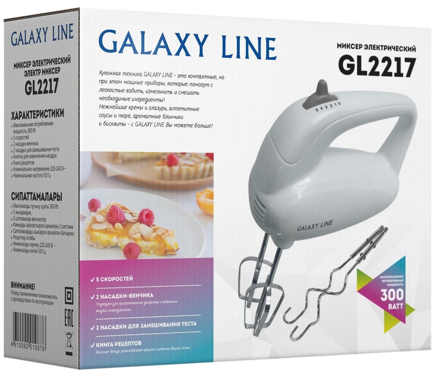 Миксер Galaxy LINE GL 2217 (300Вт, 5 скор. 2 насадки-венчика, 2 насадки для замеш.)