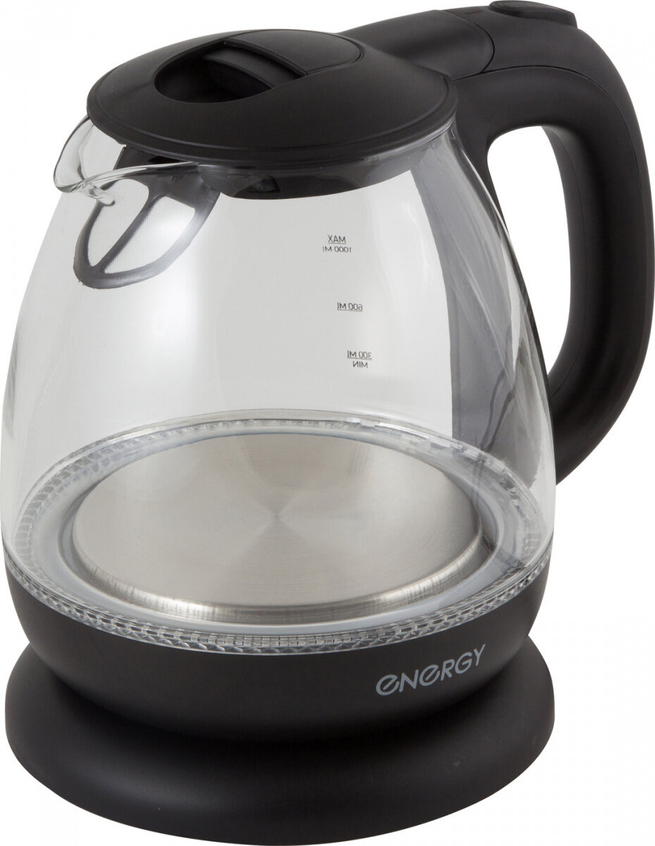 Чайник электрический Energy E-296 1 л, стекло, пластик, черный