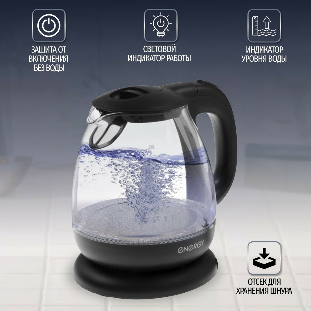 Купить Чайник стекло 1л Energy, арт. E-296, черный, 1100Вт