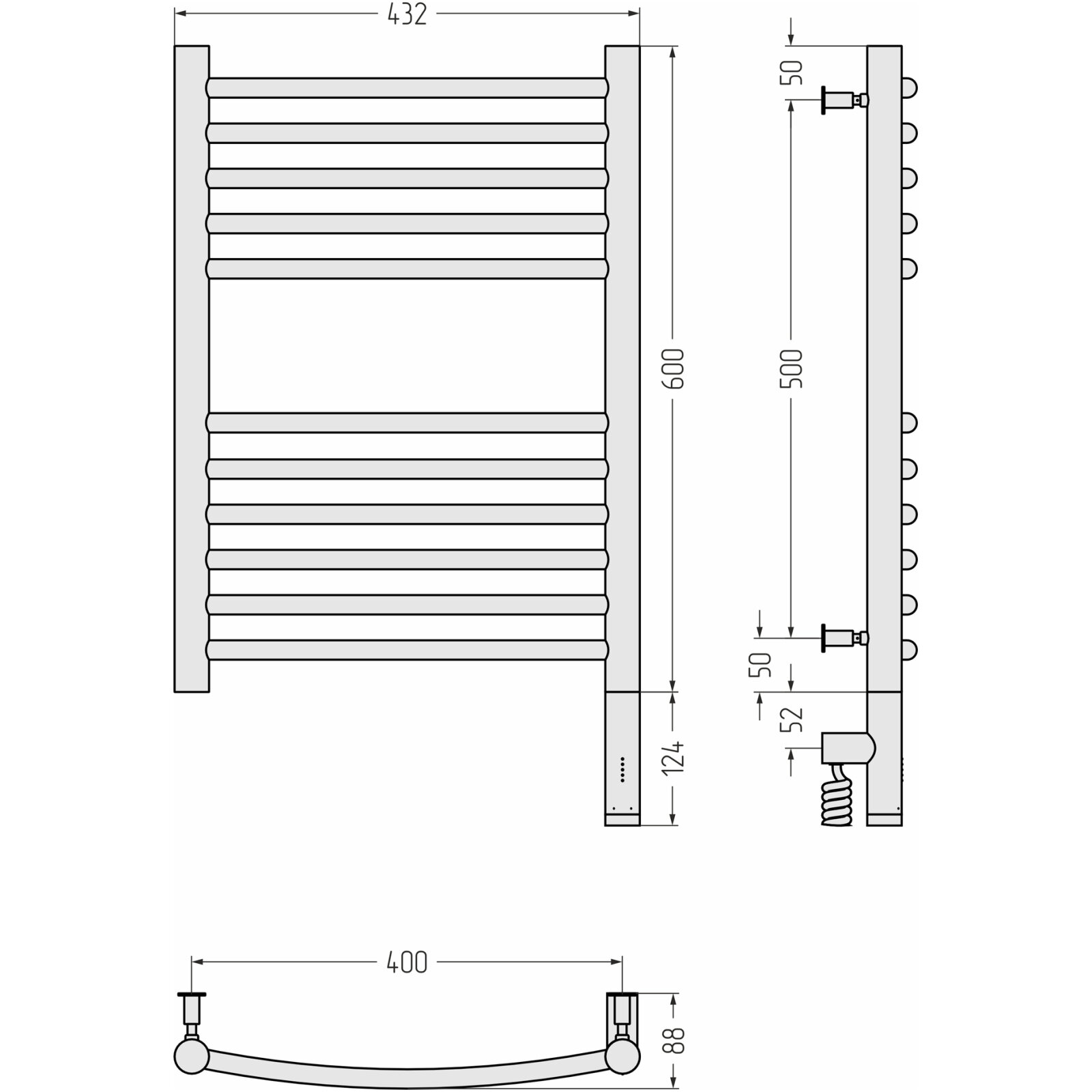 Электрический полотенцесушитель Сунержа Богема 3.0 выгнутая 600х400 птэн (Без покрытия)