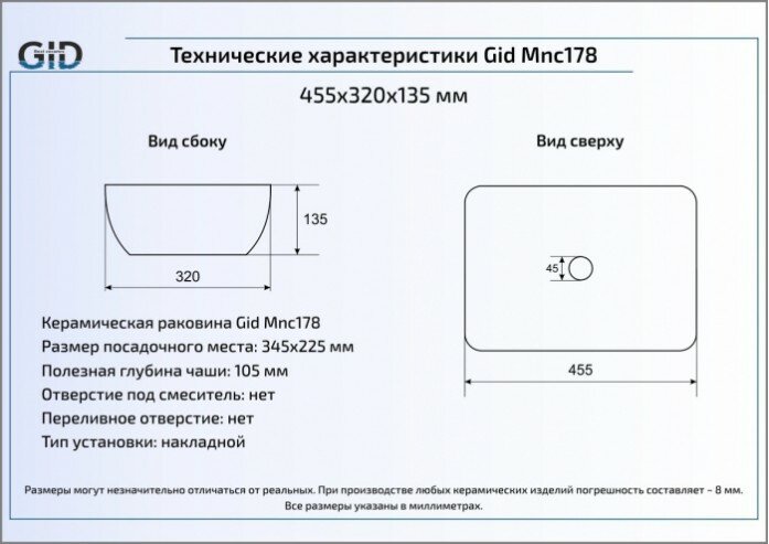 Раковина Gid 178 интересное: