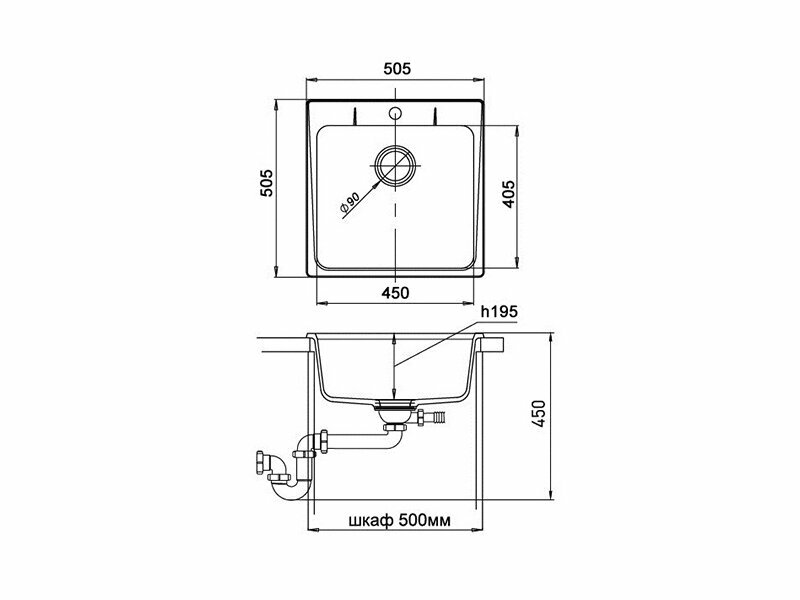 Мойка кухонная квадратная Ewigstein Gerd (G-50 антрацит)