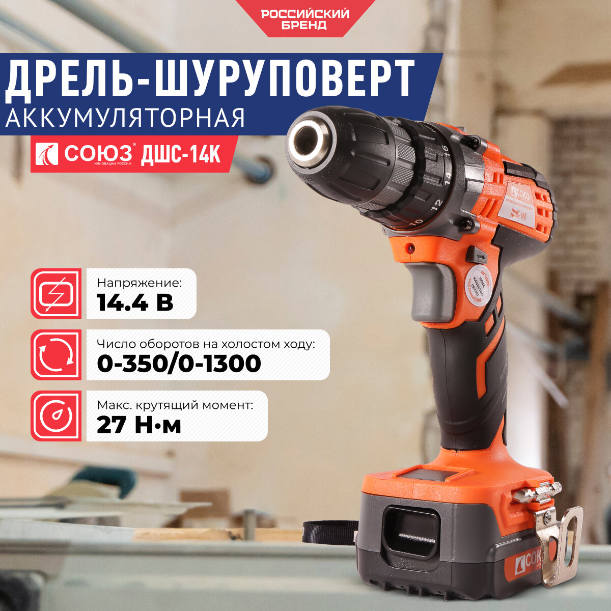Аккумуляторная дрель-шуруповерт СОЮЗ ДШС-14К