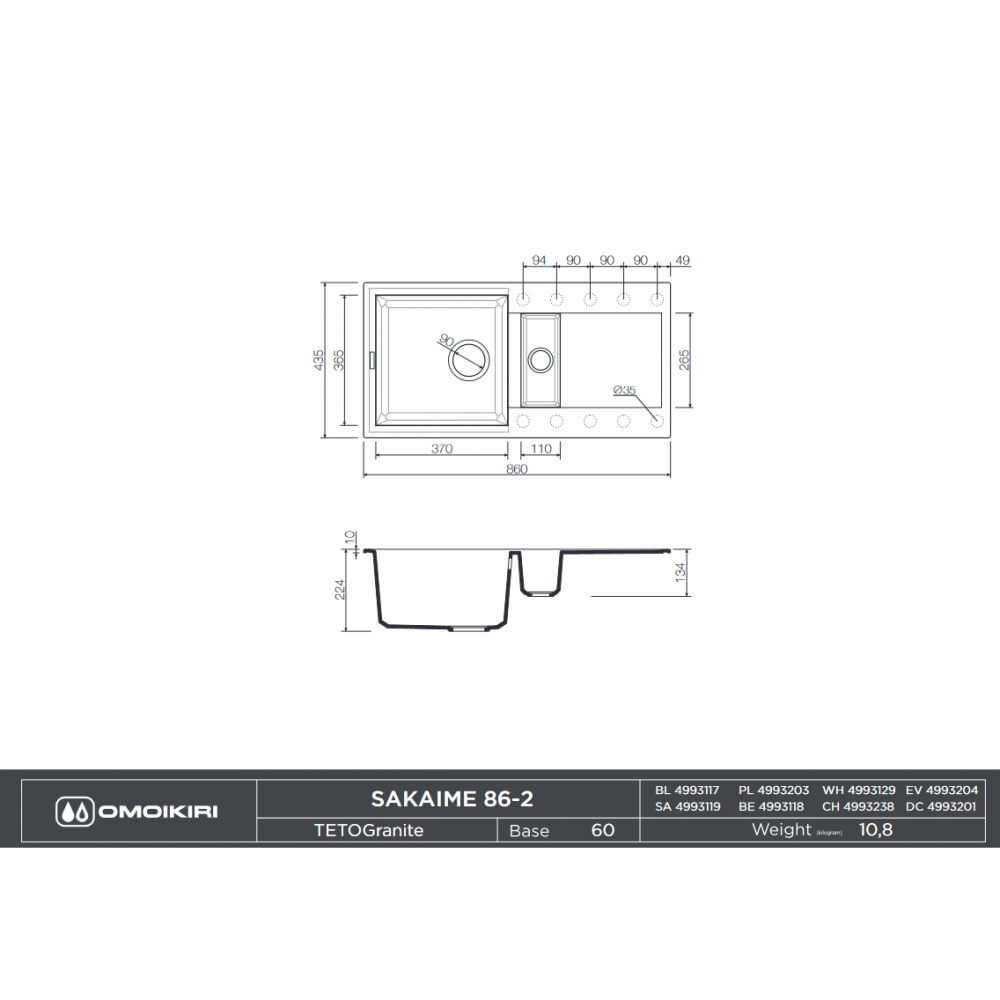 Мойка, OMOIKIRI Sakaime 86-2-EV (4993204)