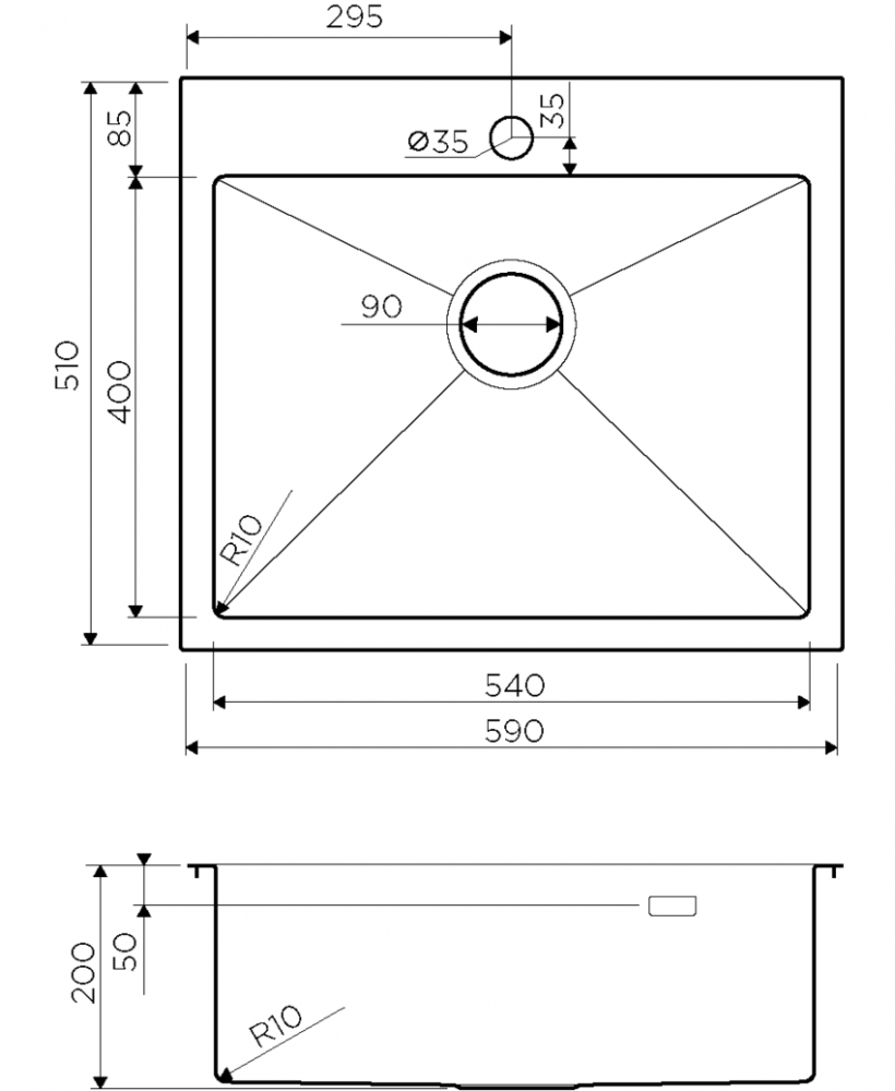 Врезная кухонная мойка LEX Maury 510