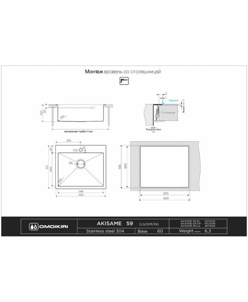 Мойка Omoikiri Akisame 59-LG