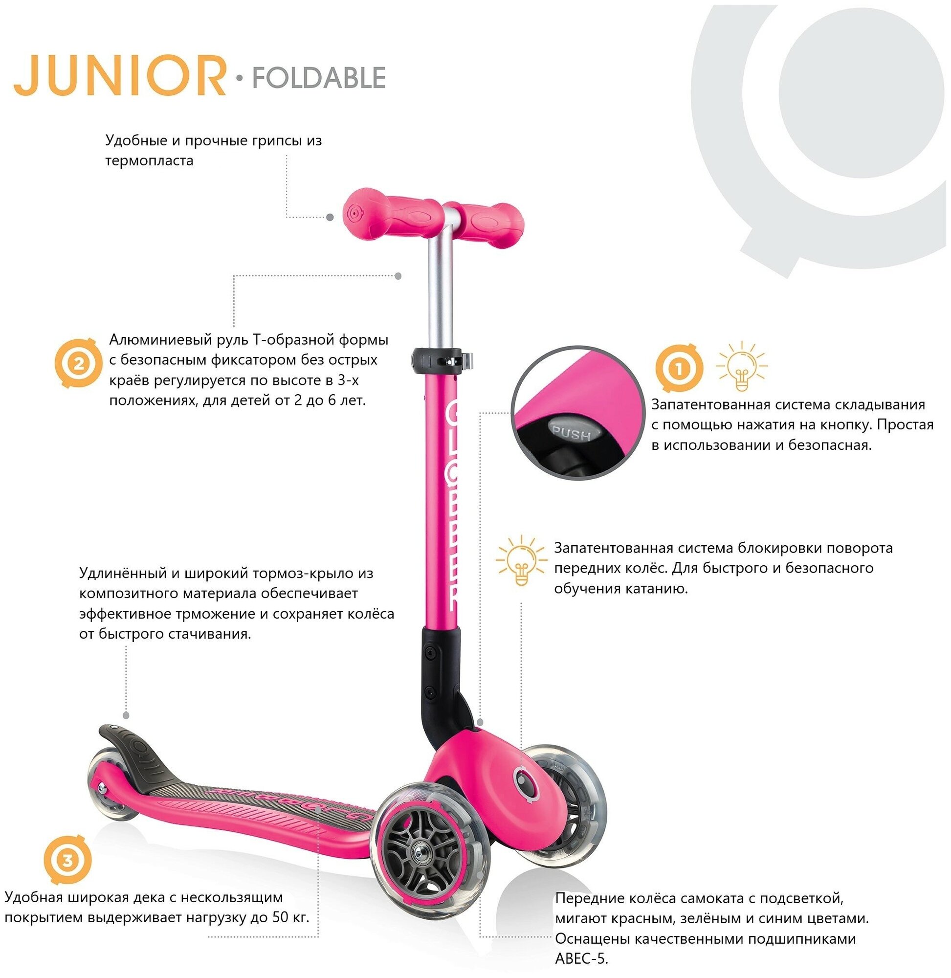 Самокаты для детей GLOBBER JUNIOR FOLDABLE LIGHTS 437-110 Цвет-Fuchsia pink