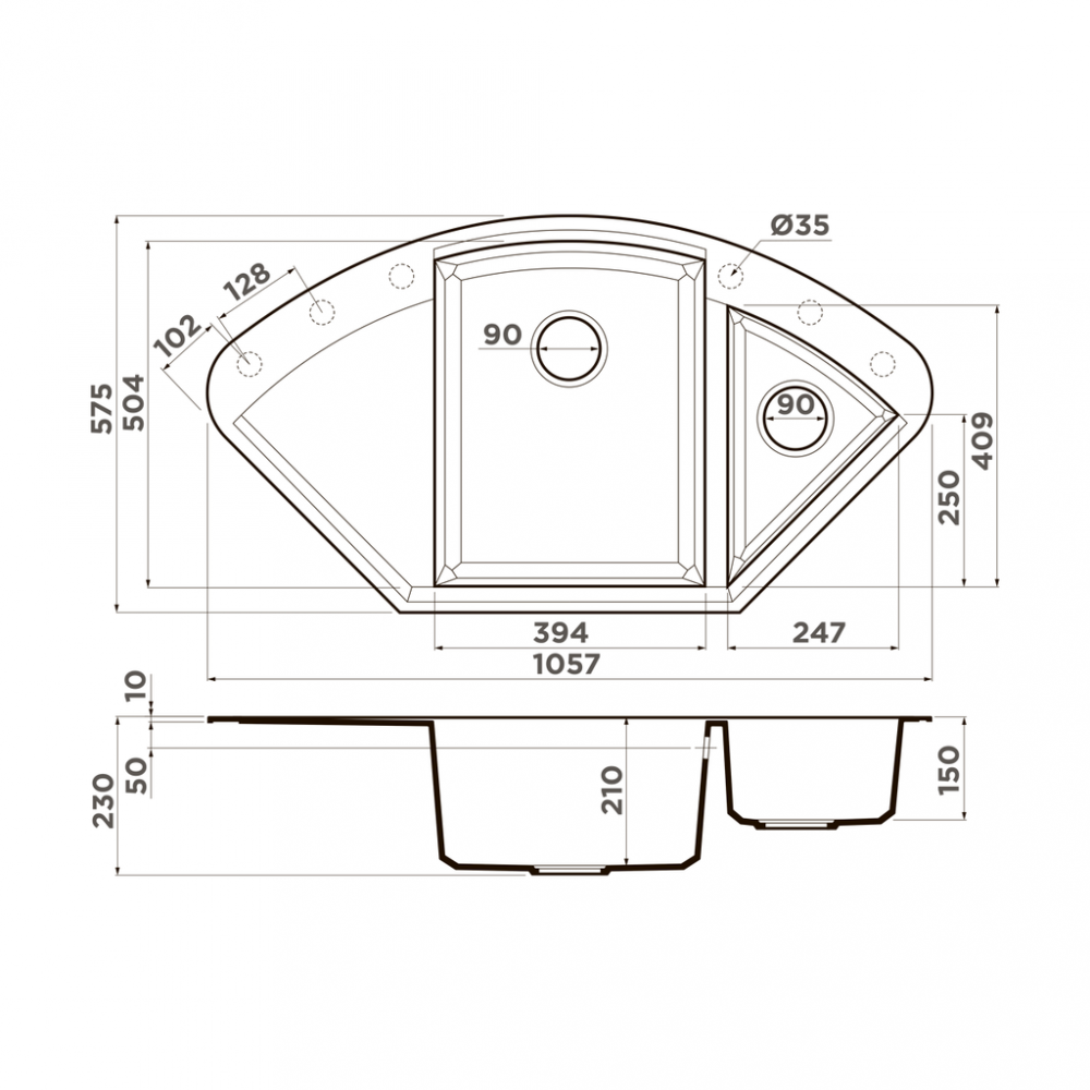 | Глубина мойки | 57 см |