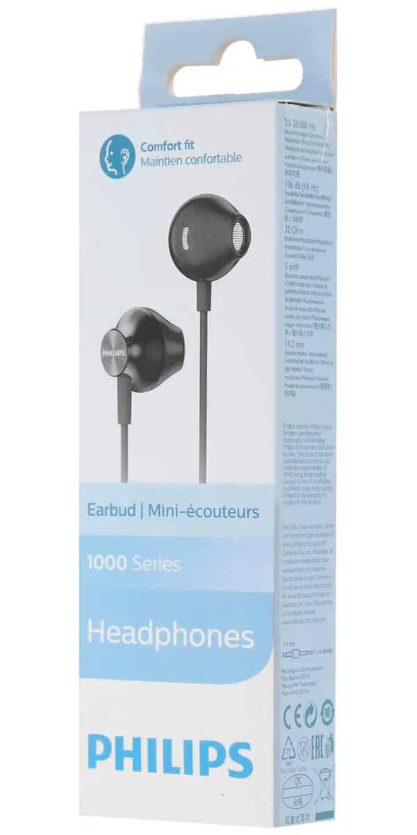 Наушники Philips TAUE100BK/00 вставные, 32Ом, 106дБ, кабель 1м, Black