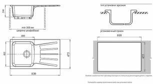 Мойка GRANFEST GF-S850L чаша + крыло 833х482мм (черный - 308)