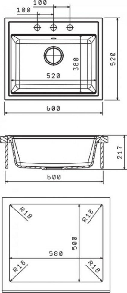 Мойка кухонная Florentina ЛИПСИ-600 600х520х217 Антрацит