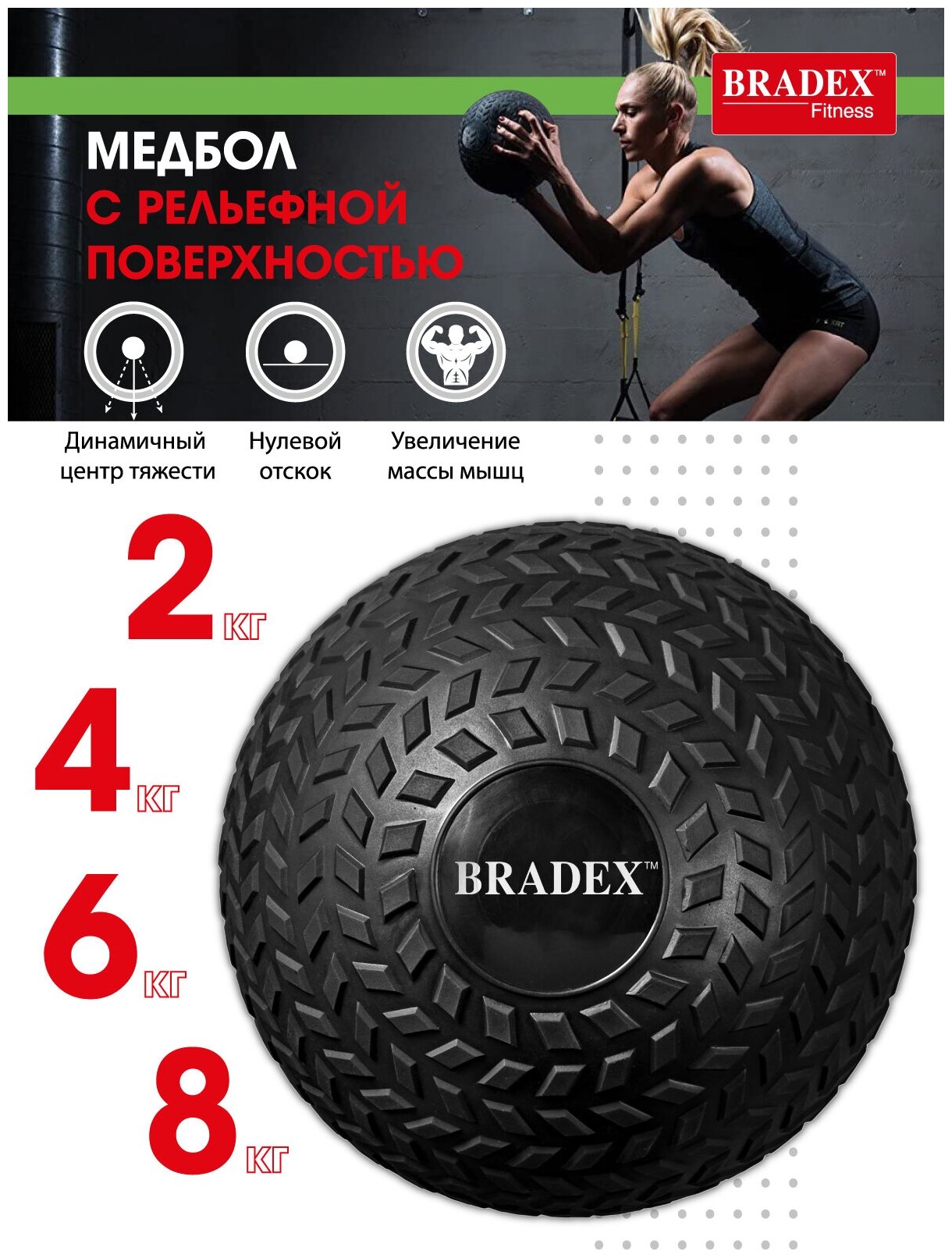 Bradex Медбол (слэмбол) с рельефной поверхностью Bradex SF 0709, 4 кг (SF 0709) интересное:
