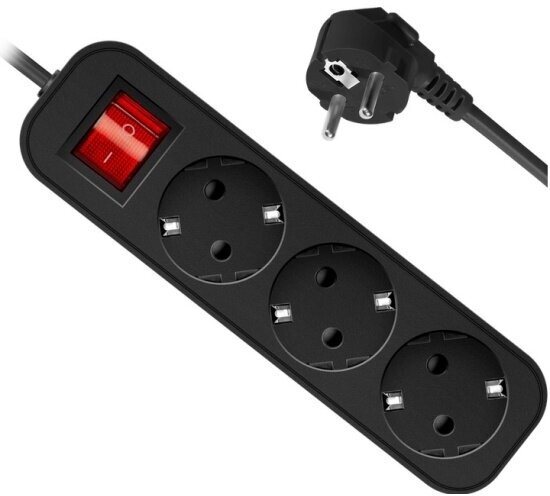 Сетевой удлинитель с выключателем Defender G330, 3 розетки, 3 м, с/з, 10А, 2200 Вт, черный
