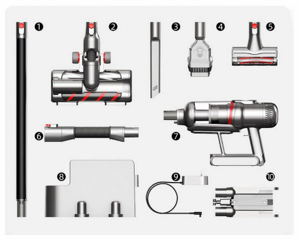 | Плюсы: | все комплектующие моются, легко снимаются и одеваются обратно, на магните, вытряхивать мусор просто удобно. все насадки можно вставить без удлиняющей трубки, так что можно легко использовать и для дома и для автомобиля. |