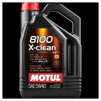 MOTUL Масло Моторное Синтетическое 5 Л - 8100 X-Clean 5W40 Acea C3, Api Sn/Cf,Bmw Ll-04, Mb 229.51,Vw 505.01,Dexos2