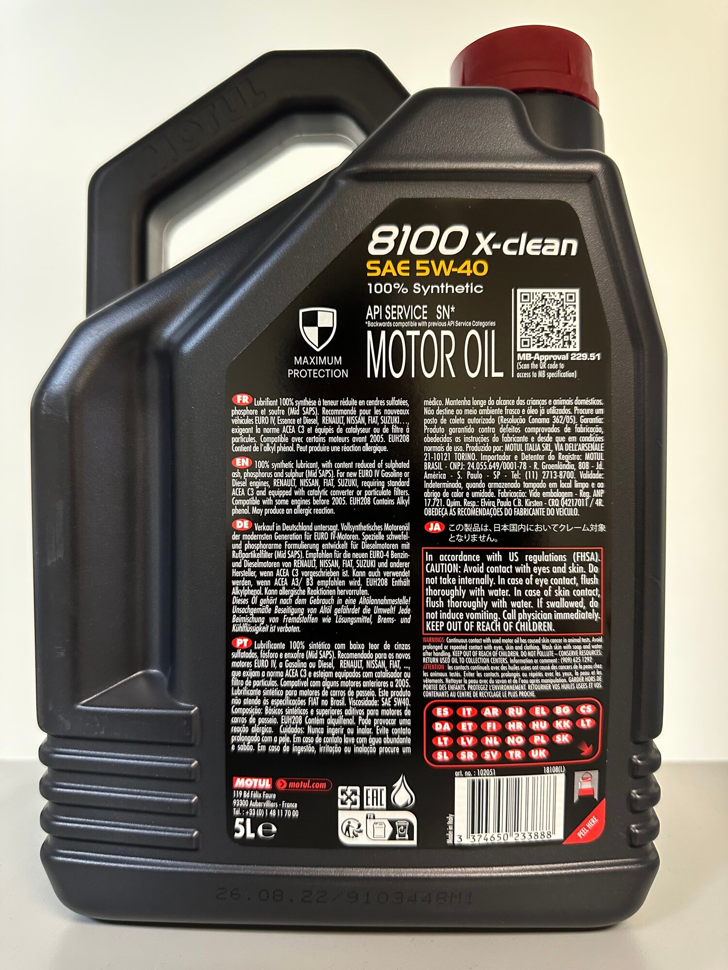 MOTUL 102051 Масло моторное 5W40 MOTUL 5л синтетика 8100 X-clean C3 1шт