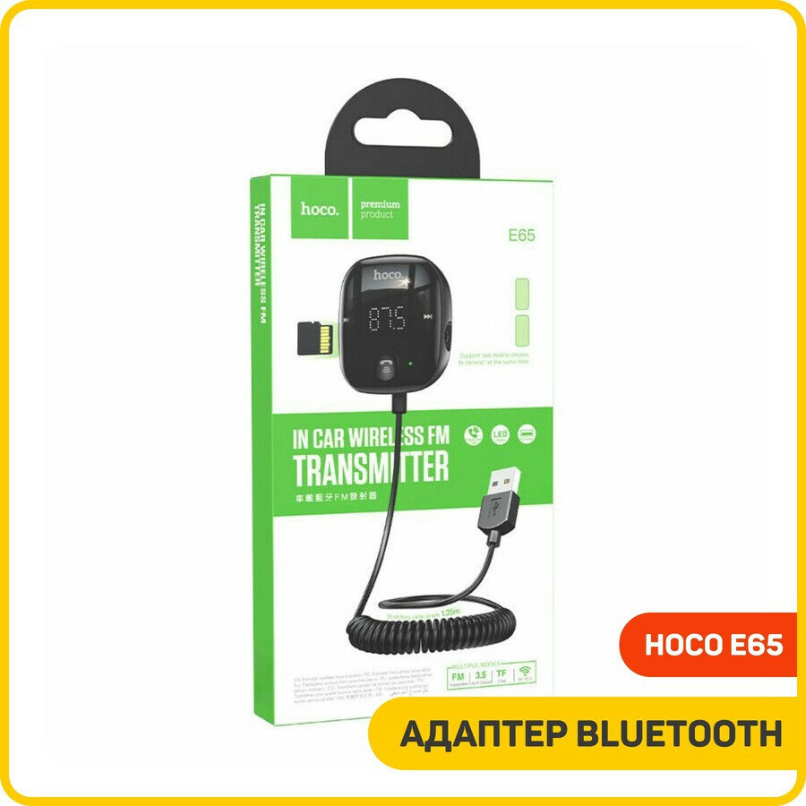 Принцип работы: воткнуть передатчик в прикуриватель, настроить в машине пустую волну и к той же подключить передатчик, зажав кнопку справа, подключиться с телефона по блютузу к hoco 65, включить песню - готово |