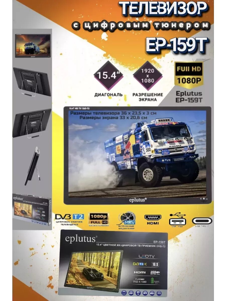 Купить Портативный телевизор Eplutus 159T (I31500TE) 15.4, черный. Полная поддержка российских форматов. Компактные размеры