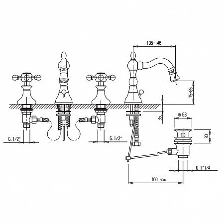 Смеситель для биде на три отверстия бронза Cezares Atlantis-Nostalgia ATLANTIS-NOSTALGIA-BBS2-02