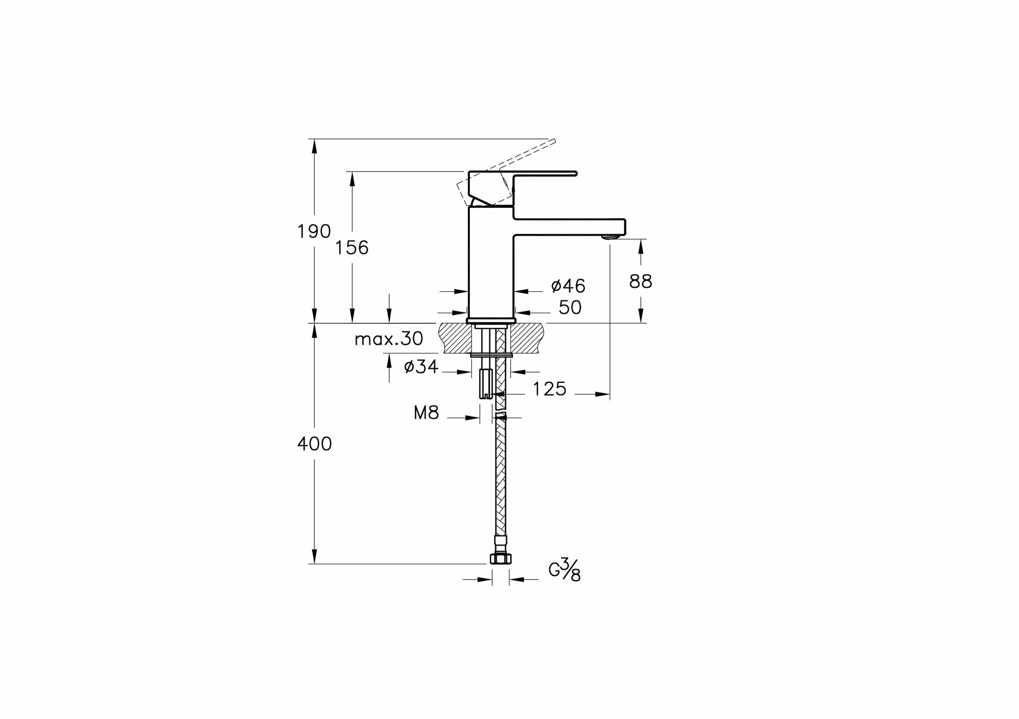 Смеситель для раковины, Vitra Flo S однозахватный, без донного клапана, цвет: хром A41936EXP