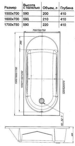 Ванна акриловая Каспий MIRSANT 150*70 белая "Premium" интересное: