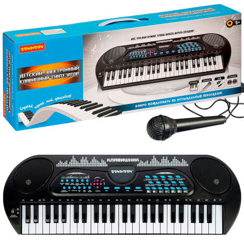 Купить Синтезатор BONDIBON ВВ4948 клавишник с микрофоном и USB-шнуром, 49 электронных клавиш, стереозвук