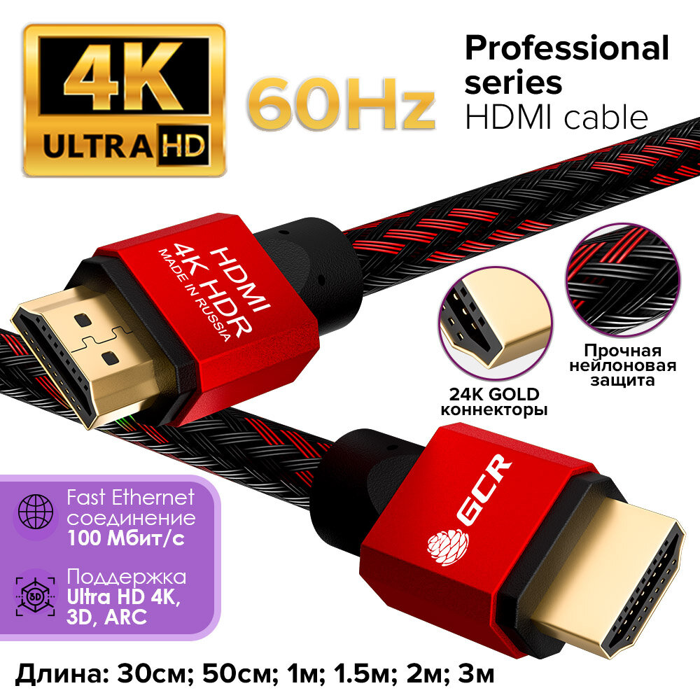 Кабель 1.5м GCR HDMI 2.0 серия PROF нейлон Ultra HD 4K 3D 18 Гбит/с для PS4 Xbox One черный 24К GOLD