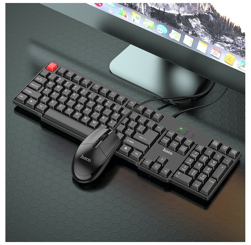 Комплект мембранная проводная клавиатура и мышь Hoco GM16 Business keyboard and mouse set (русские буквы), черный
