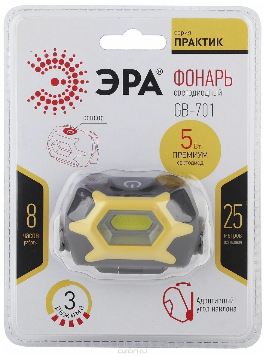 Купить ERA Фонарь GB-701 налобный "Практик" 5Вт COB 3xAAA сенсор 3 режима блист. ЭРА Б0027819