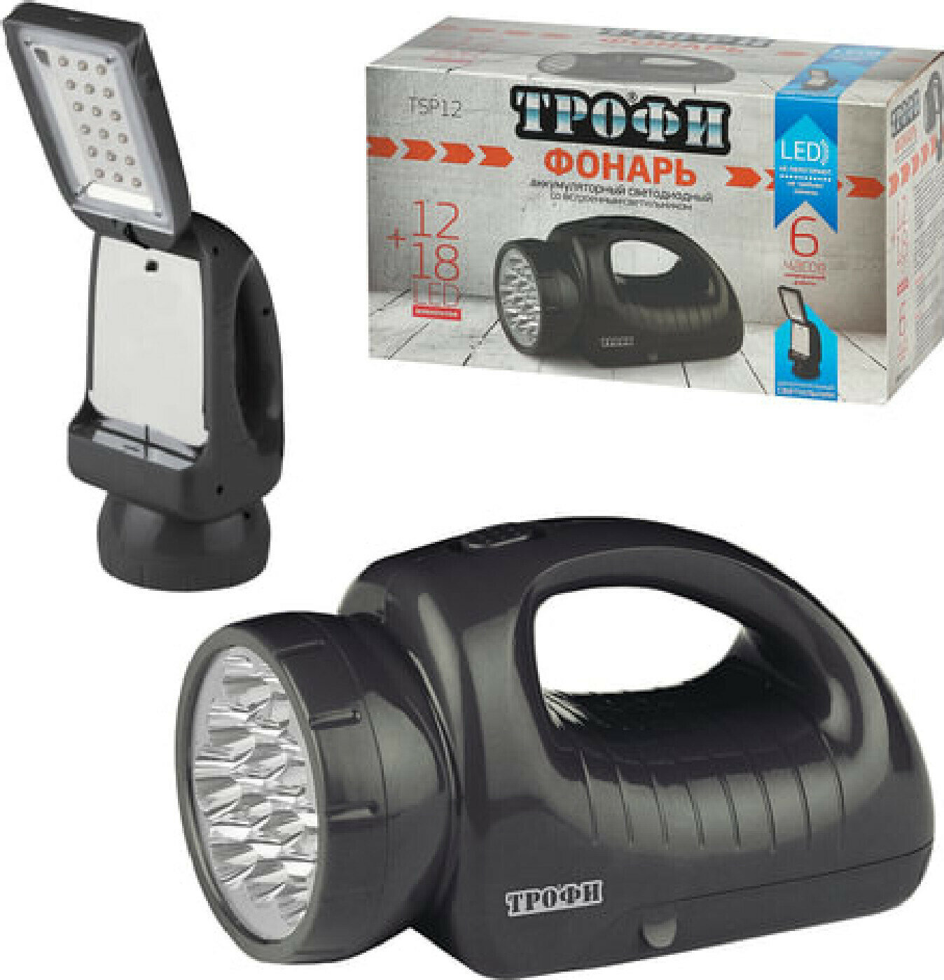 Фонарь светодиод Аккум 4V1.8Ah 12+18LED ЗУ 220В TSP12 Трофи интересное: