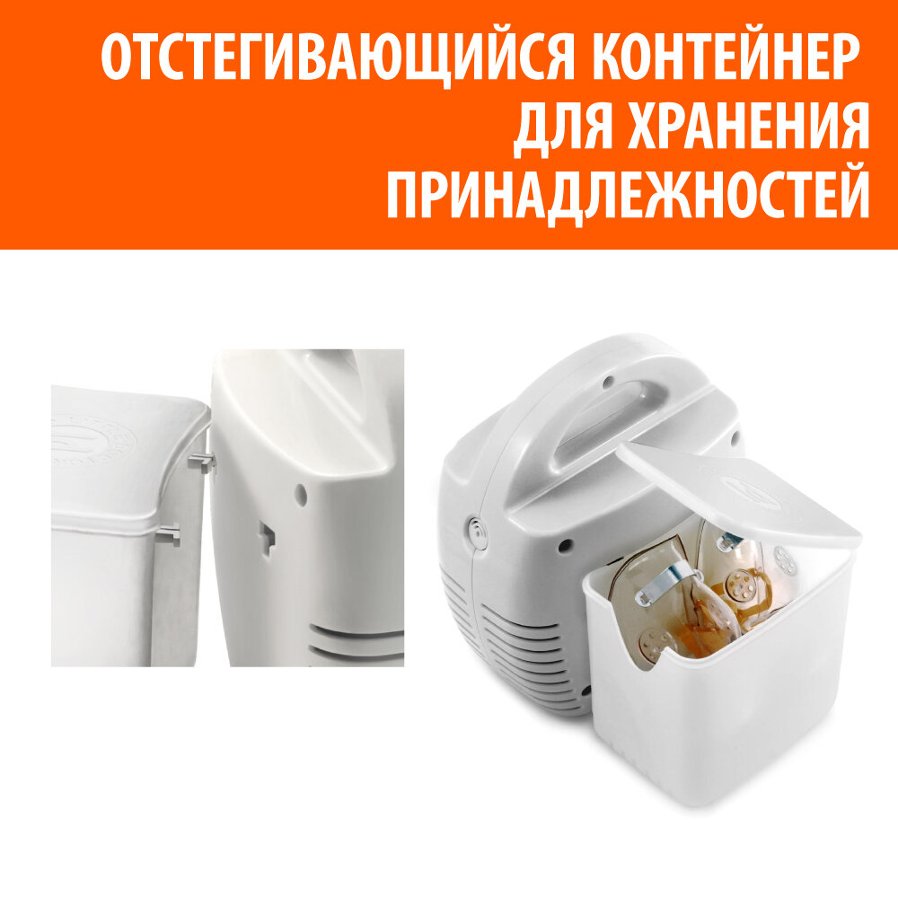 | Плюсы: | Простой, надежный ингалятор, хорошая комплектация, две маски детская и взрослая в комплекте, легко моется после использования. Есть пристегивающийся контейнер для аксесуаров. |