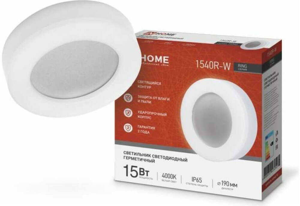 Светодиодные панели IN HOME Светильник светодиодный RING-1540R-W 15Вт 230В 4000К 910лм 190мм IP65 круг IN HOME 4690612023250