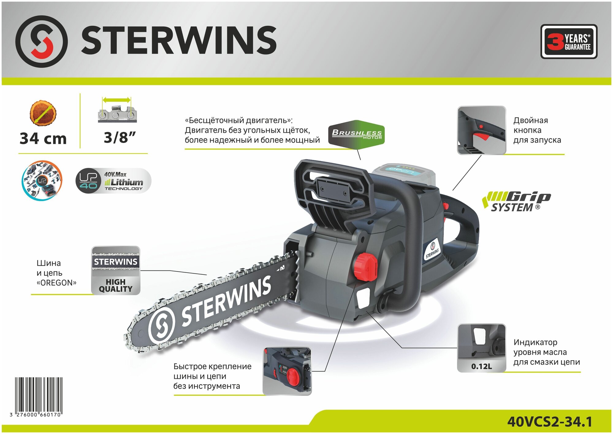 Аккумуляторная пила Sterwins UP 40VCS2-34.1, 40 В шина 34 см АКБ и ЗУ не в комплекте