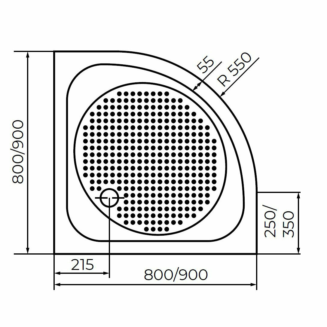 Душевой поддон полукруглый RGW LUX/TN-P, 16180488-41, 80*80