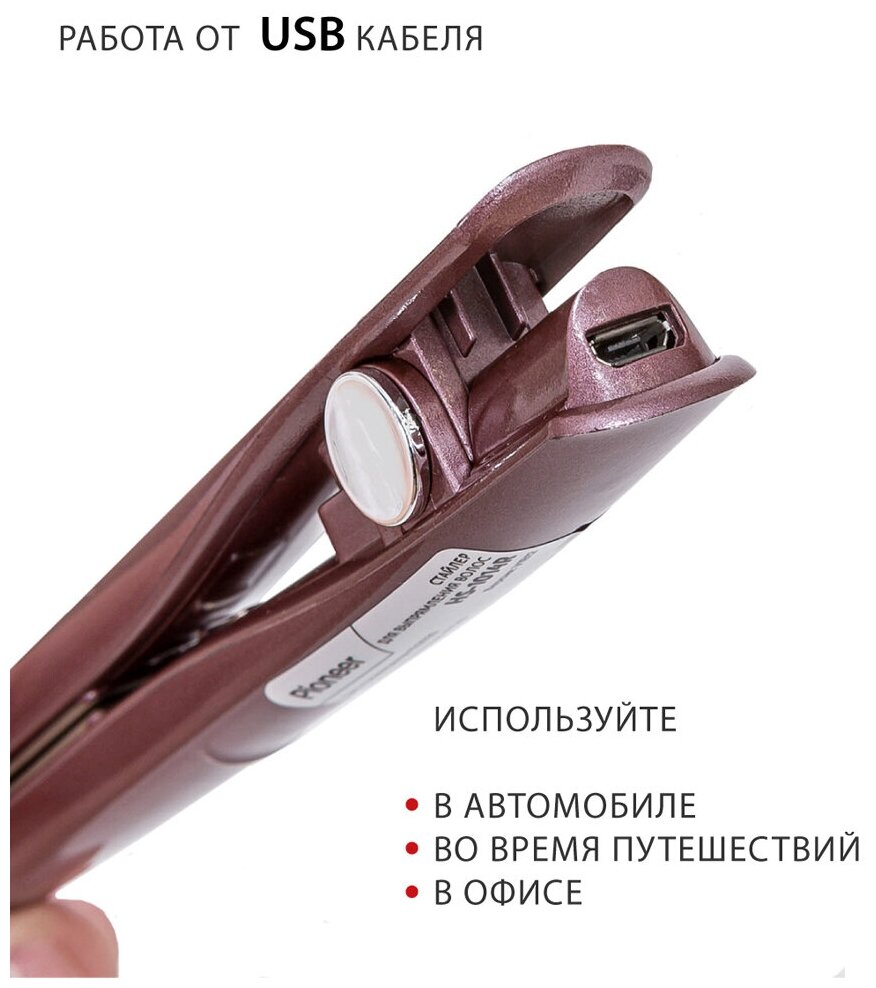 Стайлер для выпрямления волос HS-1014R Pioneer с USB, индикацией питания и керамическими пластинами 60х13 мм, 12 Вт