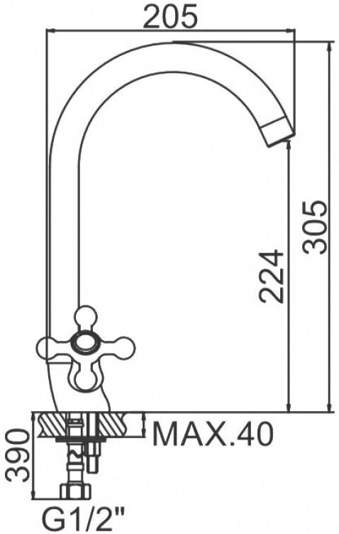 Смеситель для кухни, 1/2 керам, шпиль Ledeme, 1/10; L4319
