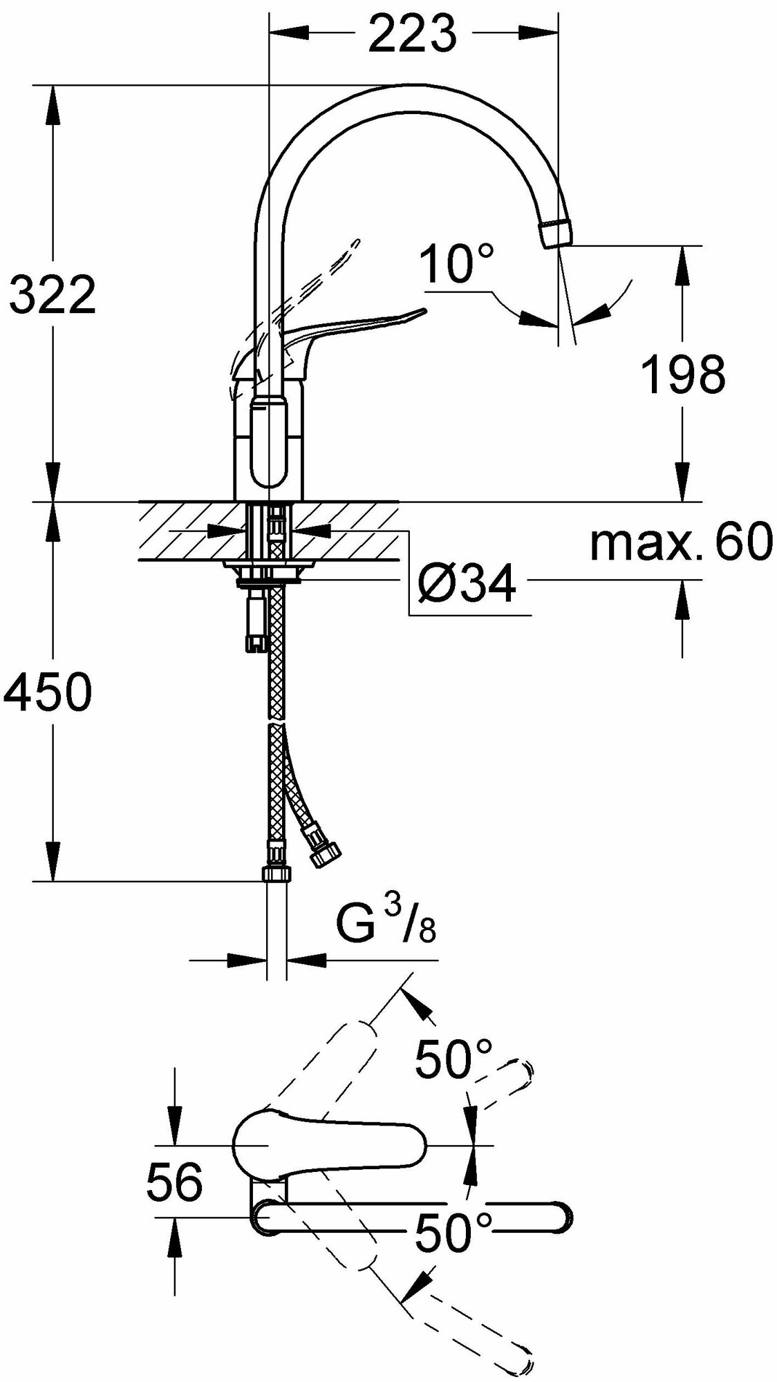Смеситель для кухни GROHE Euroeco Special с высоким изливом, хром (32786000)