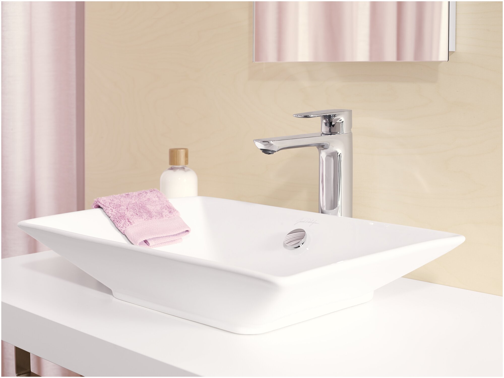 | Плюсы: | аккуратный, красивый и удобный для раковин чаш |