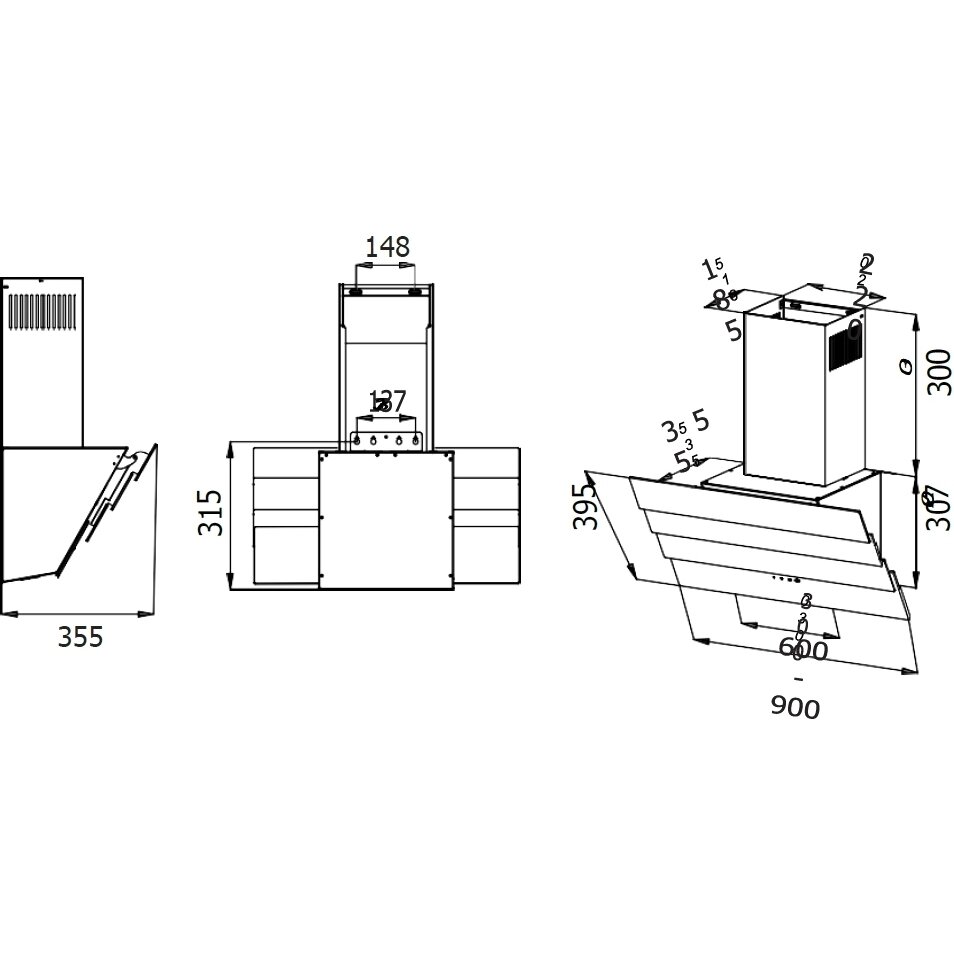 Наклонная вытяжка, 60 см, электронное управление, сенсорная панель, 3 скорости работы, производительность 920 м3/ч, LED освещение, черный, металл, стекло, 600х355х395-607 мм.